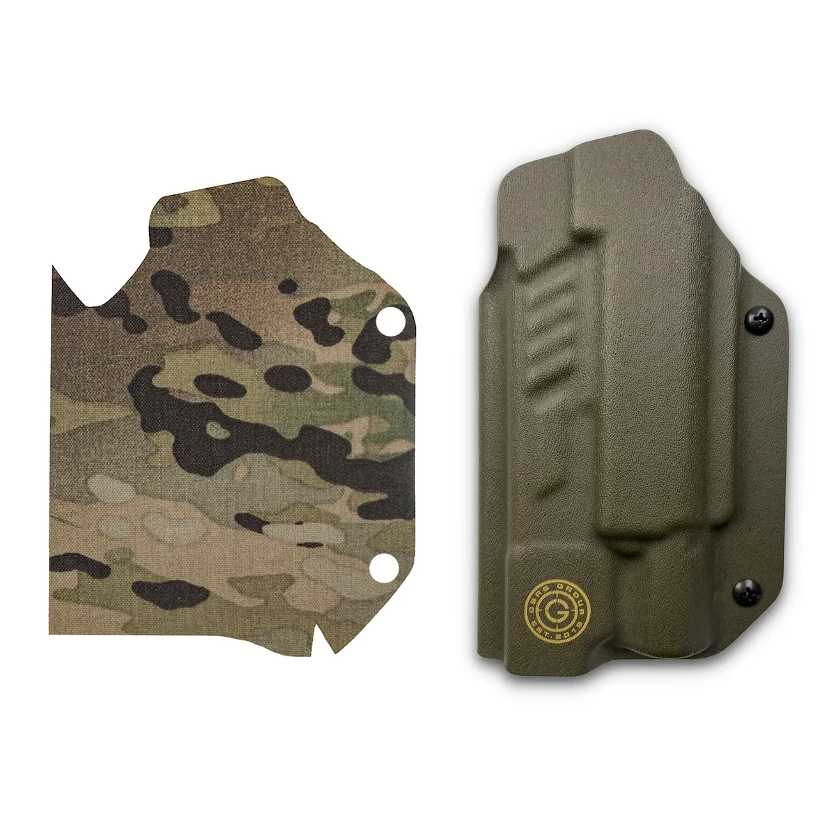 To elevate both performance and aesthetics, the GBRS Group Cordura Holster Wrap integrates perfectly with this OWB holster. Precision laser-cut from 500D Cordura, the wrap eliminates the reflective shine of polymer holsters and adds a rugged, abrasion-resistant exterior layer — delivering signature reduction and long-term durability. Whether you're matching a Multicam environment or simply adding silent protection to your sidearm carrier, this combination delivers GBRS Group's signature Tier 1- reliability.