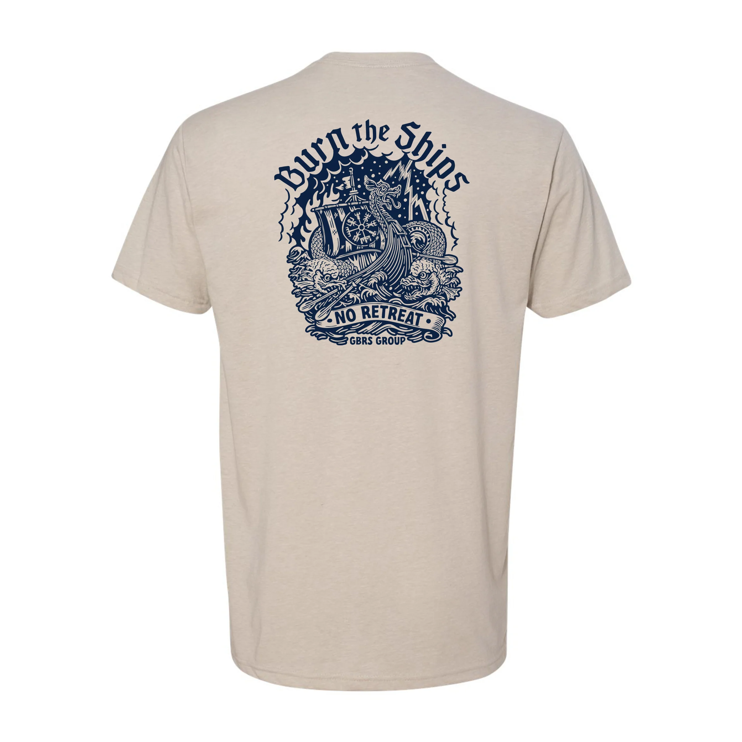 - Screen printed center chest GBRS Burn the Ships logo design