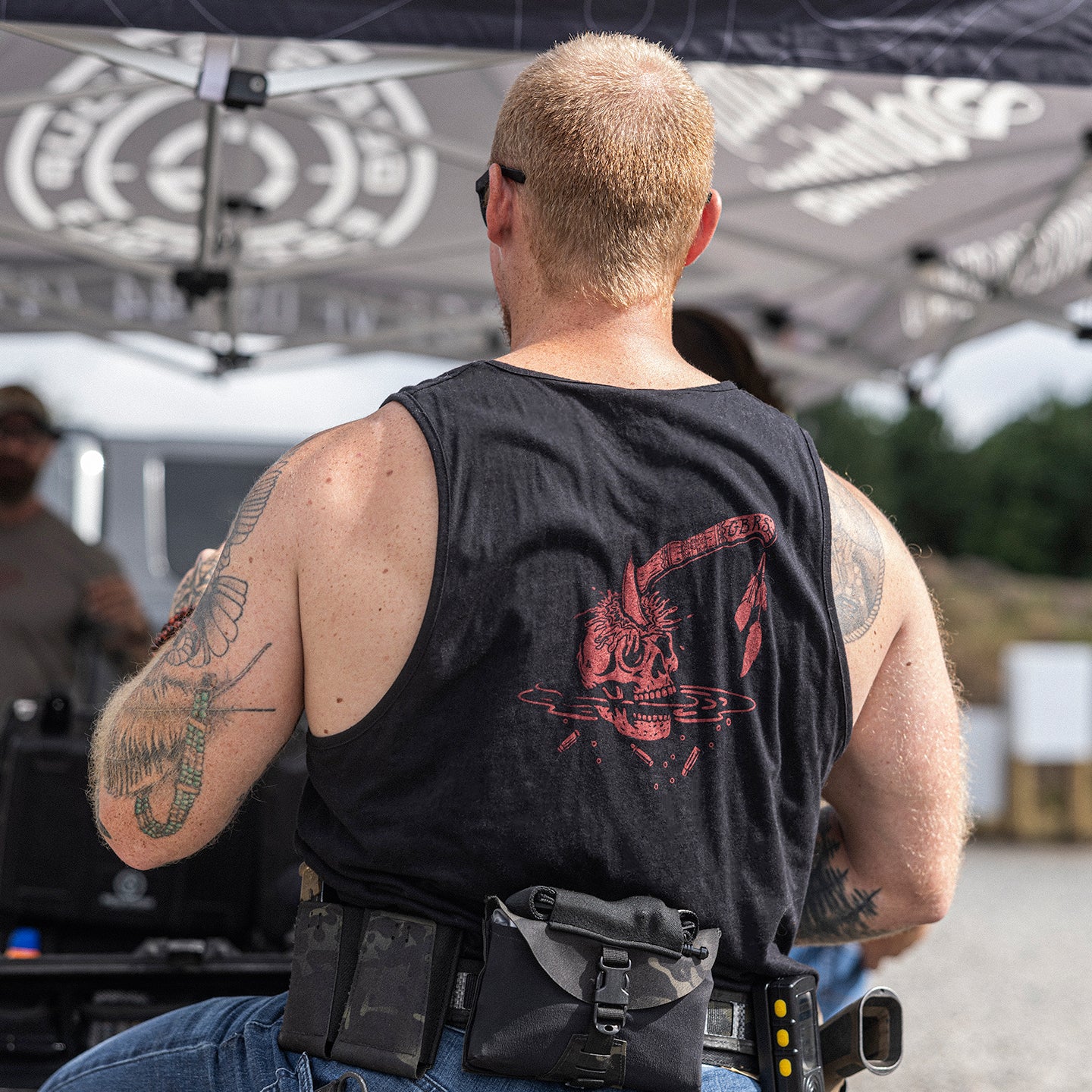 - Screen printed center chest Always On The Offensive Axes design