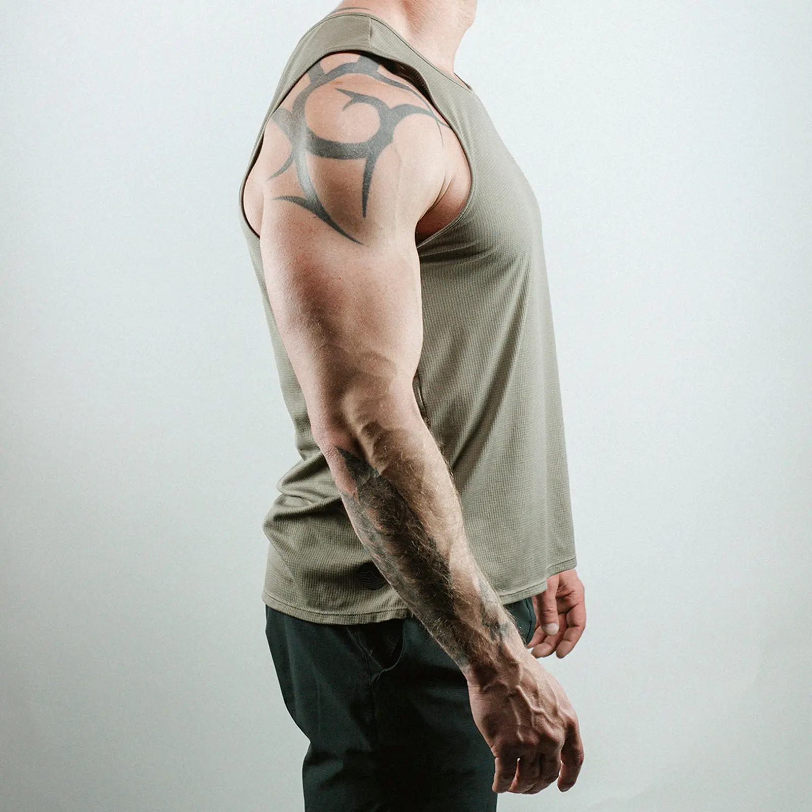 Featuring side hem slits, a rounded hemline, wrap shoulder seams and binding finishes on the neckline and armhole. The Full Range Of Motion Set Point™ Crest Tech Tank Top was created to overcome common issues observed through years of experience thriving in hostile and varied climates.