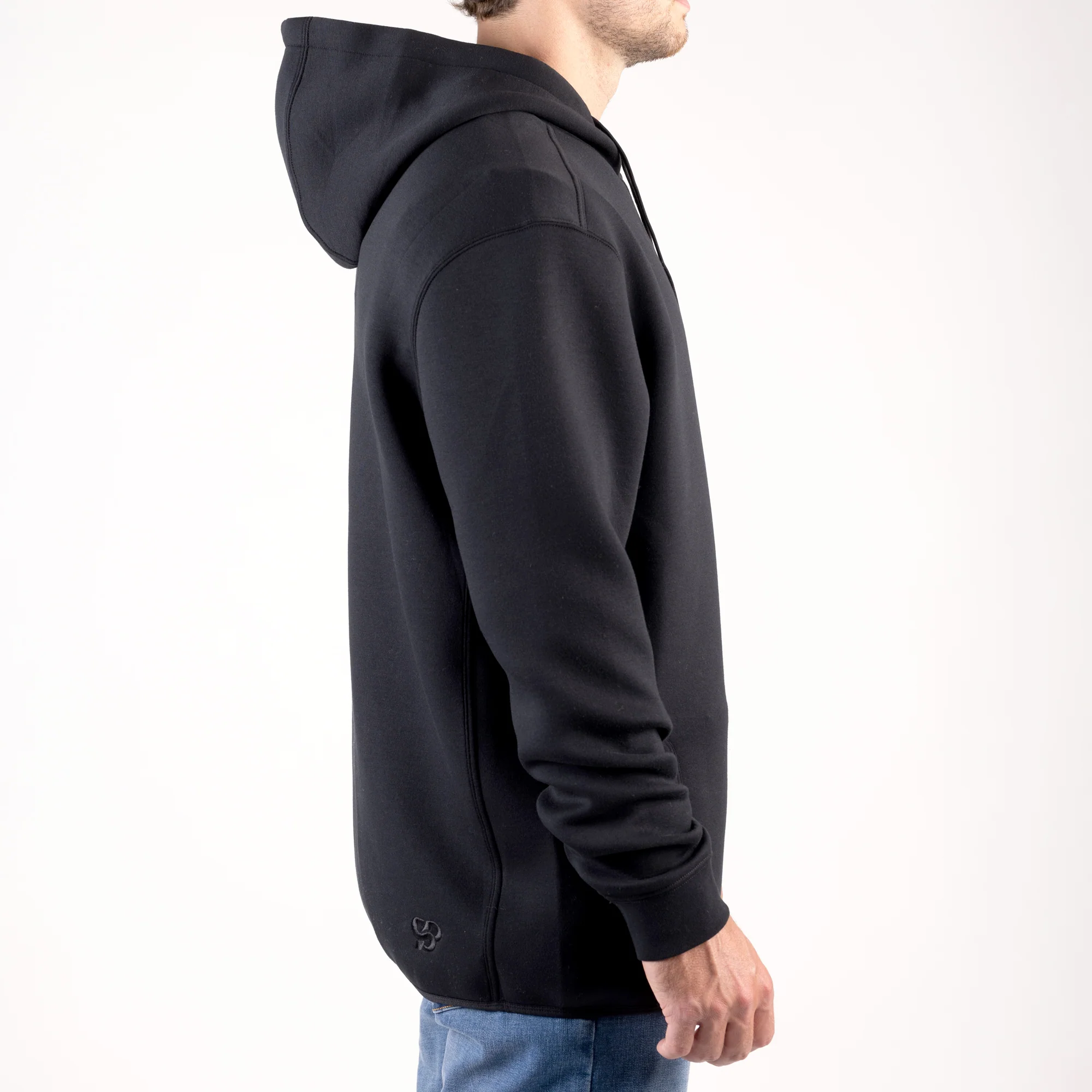 - Kangaroo hand pocket bag construction with clean finish into side body seams